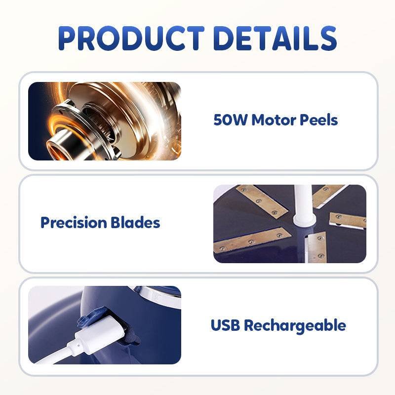PEEL LIKE MAGIC, NO SWEAT, NO MESS – Just press a button and let the machine do the work—perfectly peeled fruit in 25 seconds flat. The 50W motor peels with power but stays whisper-quiet, thanks to smart cooling tech that prevents overheating.