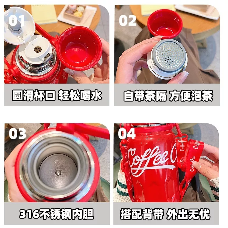 2025 new】800/1200ml GERM Coca-Cola Co-Branded Thermos Cup 316 Stainless Steel Liner Tumbler Portable Cold Kettle Double Drink