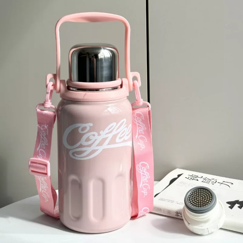 ☕𝟳-𝗟𝗔𝗬𝗘𝗥 𝗦𝗧𝗥𝗘𝗡𝗚𝗧𝗛: The thermal cup introduces a pioneering 7-layer construction, eclipsing typical double-walled options in both toughness and impact resistance. Its resilient build is paired with a versatile dual-mode handle, ready for hand carrying or shoulder slinging. Ideal for your adventurous outings and lively gatherings, it delivers unmatched durability alongside effortless portability